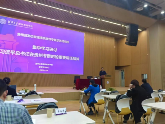 近日,由省委组织部、省委教育工委联合主办的贵州省高校党建提质增效专题示范培训班在清华大学举行。省教育厅(省委教育工委)民办高校党组织书记、学校党委书记邓维实在集中学习研讨环节作为民办高校代表,就深入学习贯彻习近平总书记在贵州考察时的重要讲话精神,作了题为《牢记领袖嘱托,坚持以高质量党建引领保障民办教育高质量发展》的交流发言。学习研讨会由省委教育工委副书记李军主持。我省有关省直单位和高校负责同志共50余人参加学习培训。