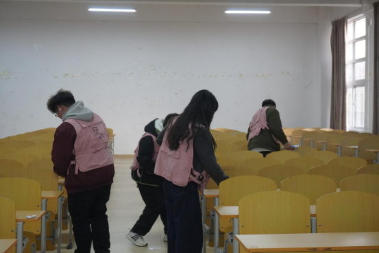 针对教室纸屑堆角、卡片遍地的情况,学生会成员化身“环境卫士”,进入传媒楼教室打扫卫生。对课桌缝隙、窗台边角堆积的驾校宣传卡片进行清除,同学们蹲身细查,用手将卡片捡起;对散落的饮料瓶、零食袋进行分类回收,通过同学们的悉心打扫、教室迎来了崭新的面貌。此次参与活动的同学们共收集300余张,同学们纷纷感慨道:焕然一新的教室真是令人耳目一新!