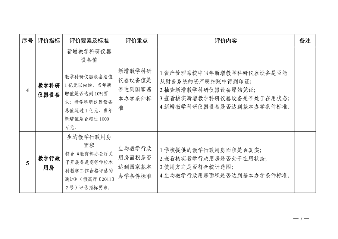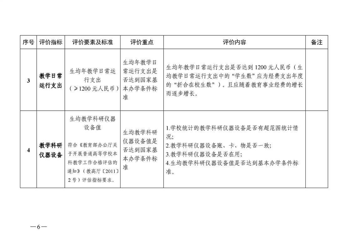 附件1:普通高等学校本科教学工作合格评估中办学条件评价环节指标体系