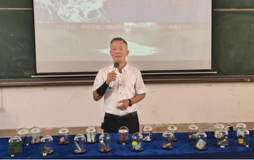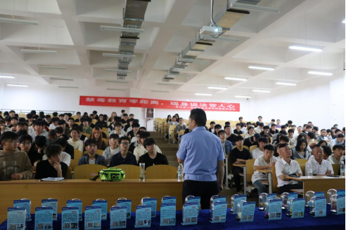 讲座伊始,贵州第二强制隔离戒毒所李飞华警官通过真实案例分析及防范视频展示,深入浅出地向同学们讲解了毒品的定义、分类、危害以及当前禁毒工作面临的严峻形势。针对防范意识薄弱的青少年群体,他特别强调近年来毒品犯罪呈现“网络化”“隐蔽化”特征,部分新型毒品伪装成“邮票贴纸”“功能饮料”甚至“电子烟油”,通过社交平台向青年群体渗透。并结合毒品模型和吸毒视频的展示,提醒同学们要时刻保持警惕,切勿因好奇或轻信他人而误入歧途,应当树立正确的人生观、价值观,提高自我保护意识,坚决远离毒品。