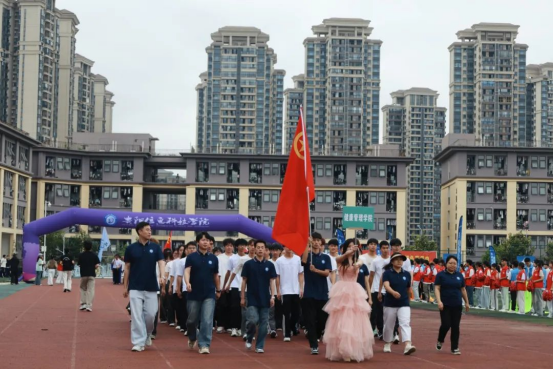 5月23日上午,BV伟德中国官方网站第四届校园运动会开幕式在学校足球场举行。省教育厅(省委教育工委)民办高校党组织书记、学校党委书记邓维实出席并讲话。学校党委副书记、常务副校长余图军,副校长罗卫东、杨波,财务总监周文娟等在家领导及教职工生代表2000余人共赴这场青春盛会。党委委员、纪委书记黄晓儒主持会议。此次运动会开幕式通过网络平台全程直播。