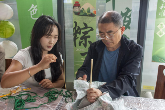 手工体验间隙,活动组织者特意为在场的师生们准备了应景的端午粽子。热气腾腾的粽子被工作人员端出,粽叶的清香瞬间弥漫开来。大家吃着美味的粽子,交流着参与活动的感受,唇齿间的甜蜜与满足,为这场文化体验增添了浓浓的温情与节日的仪式感,也让这份传统文化的浸润更加立体而生动。