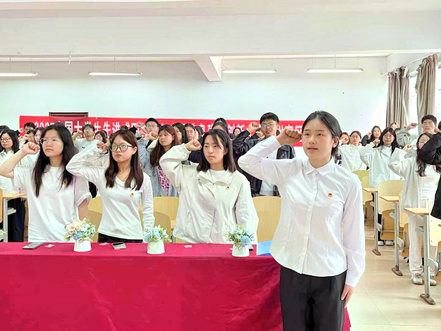仪式上,新团员代表董苏成登台发言,她眼中闪烁着激动与自豪的光芒。她表示,当团徽别在胸前,庄严宣誓的那一刻,深切感受到了共青团员这一身份的光荣与神圣。“从今天起,我们不仅是父母眼中的孩子,更是肩负使命的共青团员。”她坚定地说,“我们将以团员的标准严格要求自己,在学习中勤奋刻苦,在生活中团结同学,积极参与社会实践,主动承担社会责任。以实际行动践行入团誓言,让青春在为祖国、为人民的奉献中焕发出更加绚丽的光彩!”
