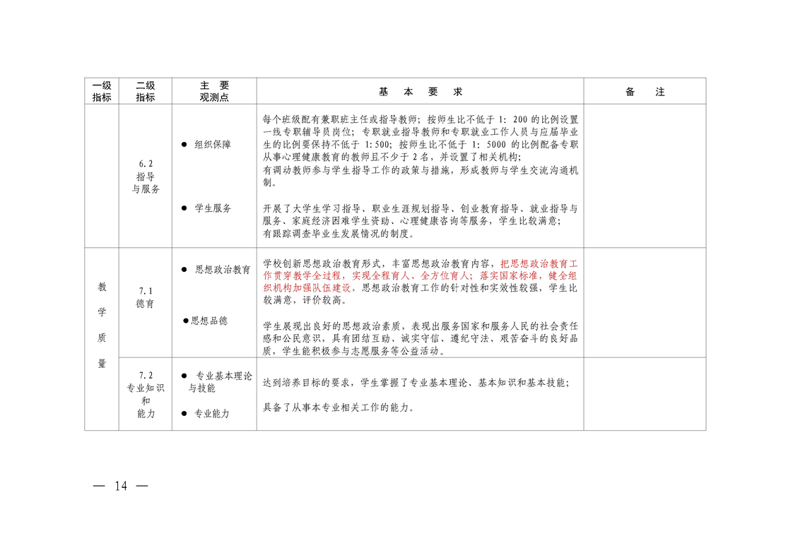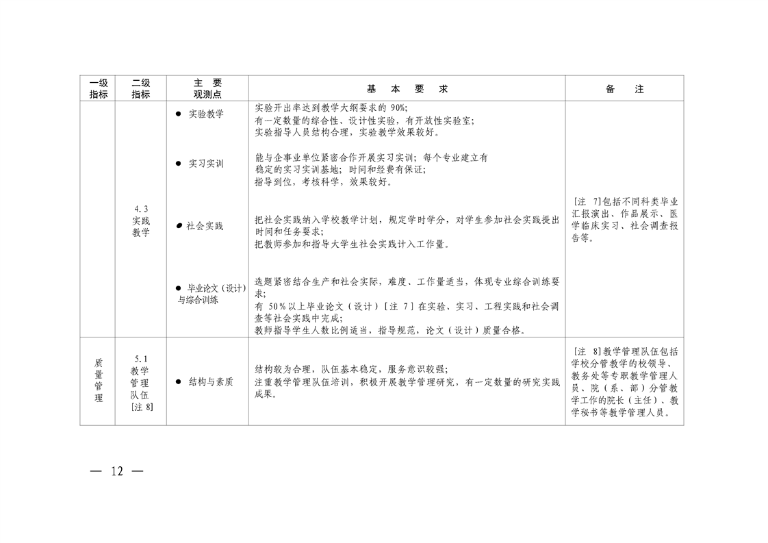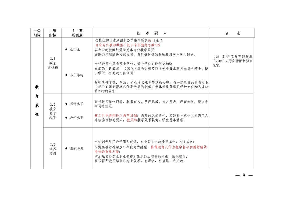 附件1:本科教学工作合格评估指标和基本要求(调整版)
