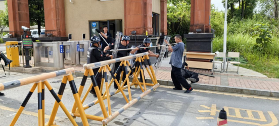 为进一步普及反恐、防暴基本常识,提高安保人员对校园突发暴力事件的反应和处置能力,6月10日上午,保卫处联合贵安新区公安局治安(反恐)支队开展反恐防暴演练活动,旨在有效应对校园重大突发事件,提升全校安保人员安全防范意识。