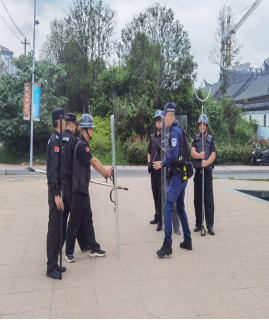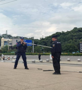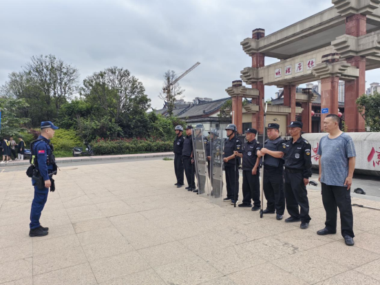 活动伊始,治安(反恐)支队民警对安保人员进行了系统的理论培训。现场演示了盾牌、钢叉、橡胶辊、抓捕器等警用器械的使用方法与操作要领,重点强调三人控制法防暴措施的要点。还讲解“五定”工作措施(定人、定岗、定责、定时间、定流程)与“五会”处置措施(会报警、会疏散、会引导、会自救、会互救)。结合生动的案例,确保每一位安保人员深刻理解并熟练掌握关键要素。