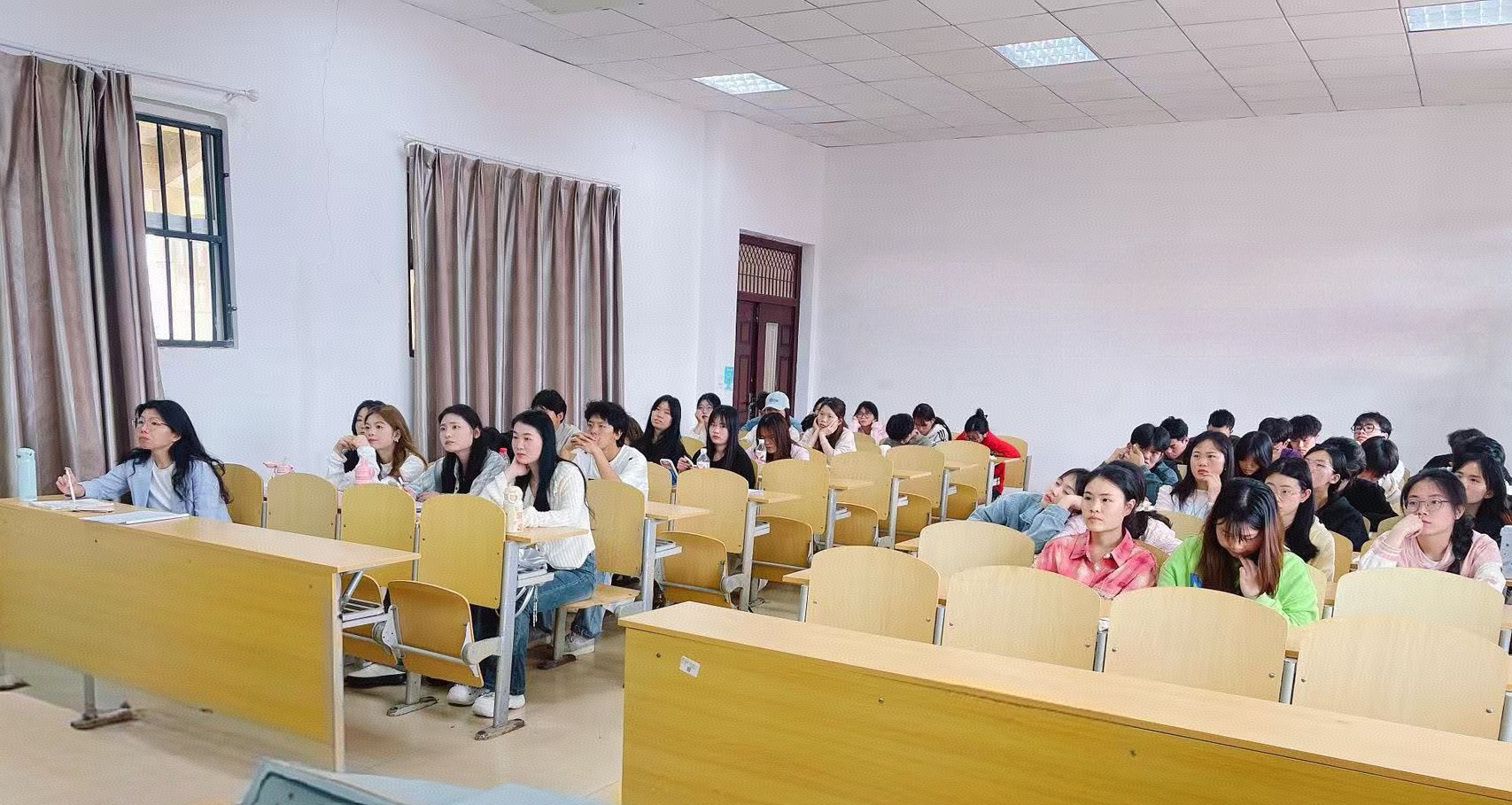 互动环节中,同学们踊跃提问,就职业发展路径、实习岗位要求、行业挑战等问题与企业代表展开交流。上海链家公司代表耐心解答,分享了宝贵的行业经验和职场心得,并表示公司高度重视人才培养,拥有完善的培训体系和晋升通道,期待同学们加入团队,实现个人价值与企业发展的共同成长。