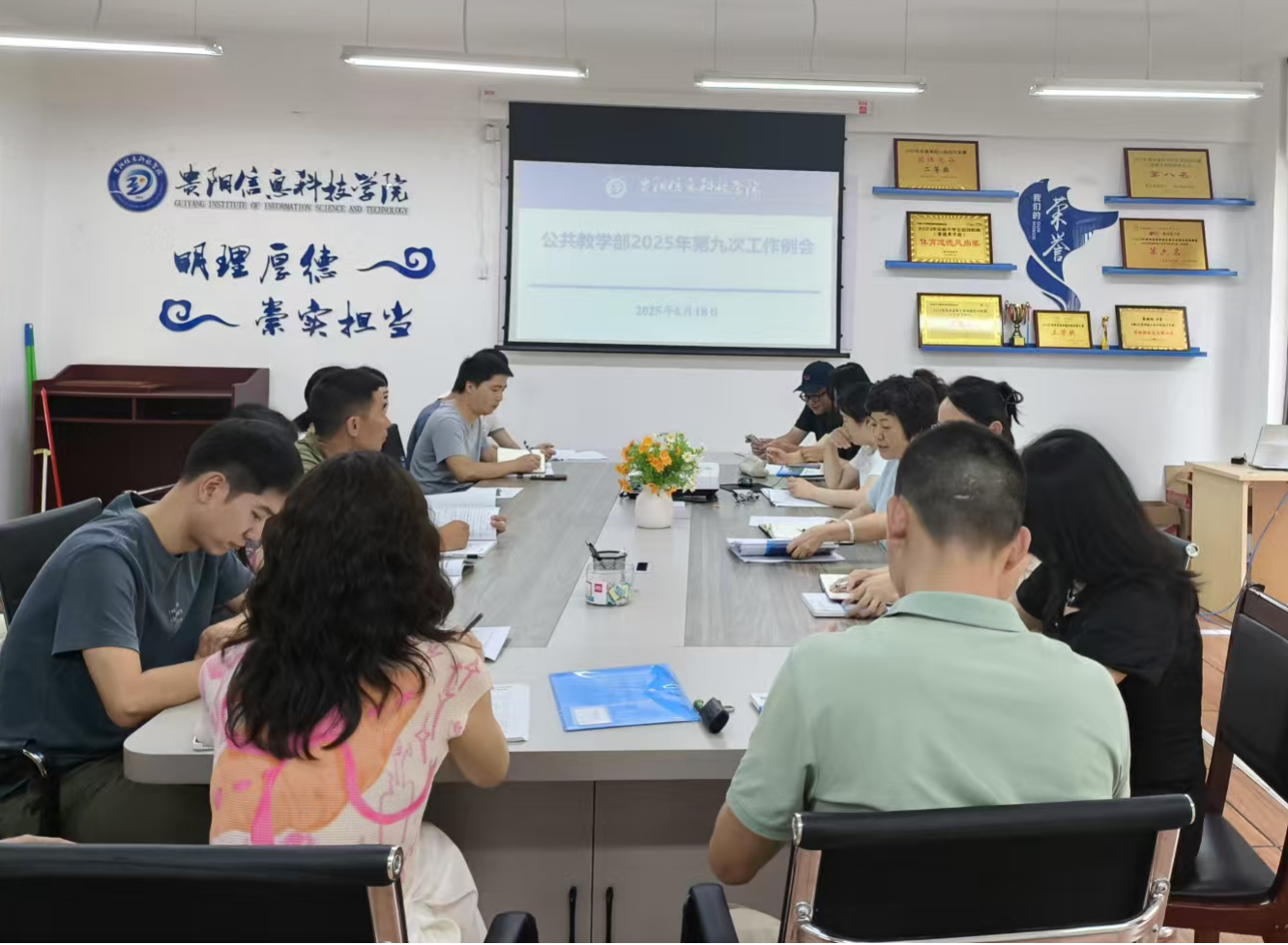 2025年6月18日中午12:40,公共教学部在A211办公室召开了部门第九次工作例会,组织全体教师学习本科教学合格评估相关知识,会议由公共教学部部长唐丽华主持,全体教师参加。