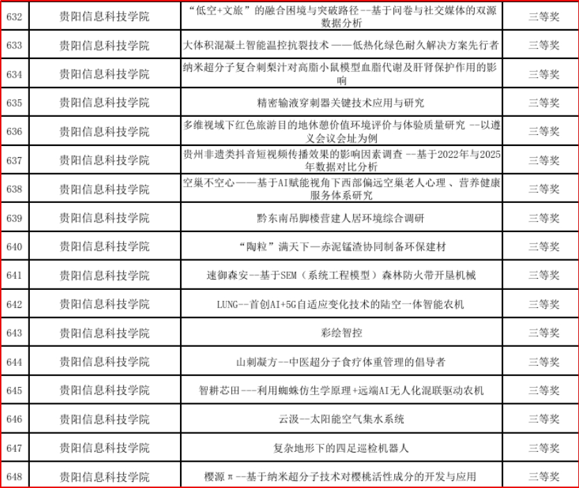 荣获二等奖的是《鲸滤》《清-水立方》项目,而涵盖工业技术(如“‘烯’天取金-开启石墨烯润滑油物理制备新工艺的探索者”)、民生与社会研究(如“空巢不空心——基于AI赋能视角下西部偏远空巢老人心理)、⠼/span>智能装备(如“翼风者——山地智能水稻收割机”)等多个前沿与热点领域的项目荣获三等奖,可喜可贺。