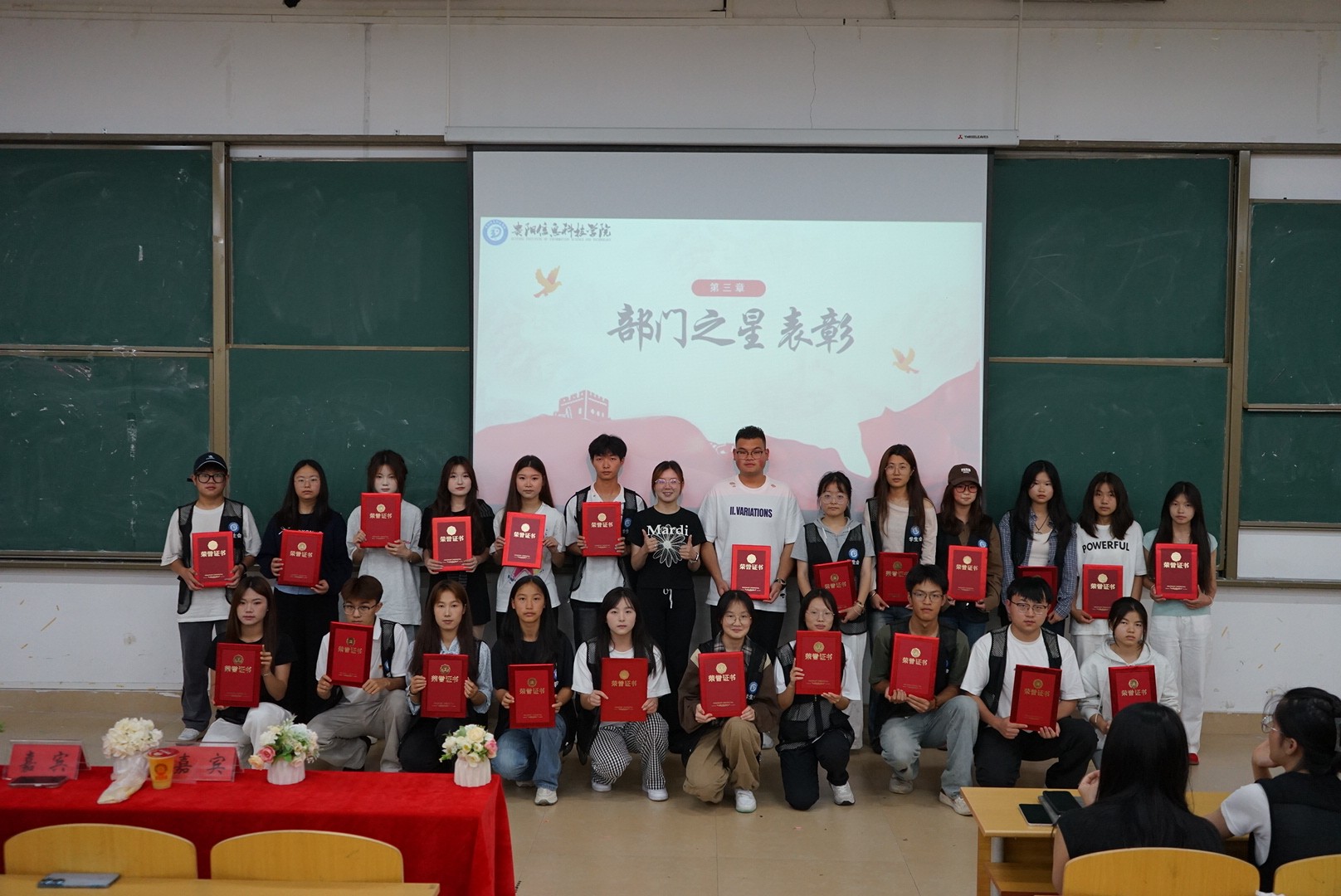 会议最后对2024-2025学年表现突出的集体与个人进行了表彰,分别授予优秀部门、优秀部长、优秀部员、部门之星、最佳优秀奖等荣誉称号。获奖代表以扎实的工作成效和担当精神,为全体学生骨干树立了榜样,彰显了新时代青年的奋斗风采。