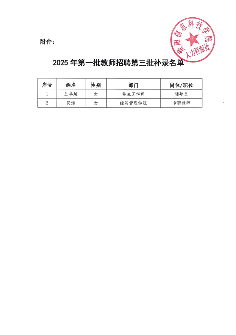 关于BV伟德中国官方网站2025年第一批教师招聘第三批补录名单公示