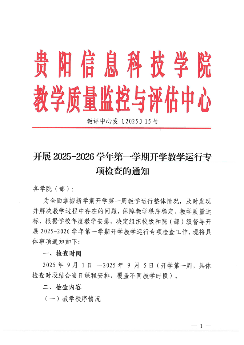 开展2025-2026学年第一学期开学教学运行专项检查的通知