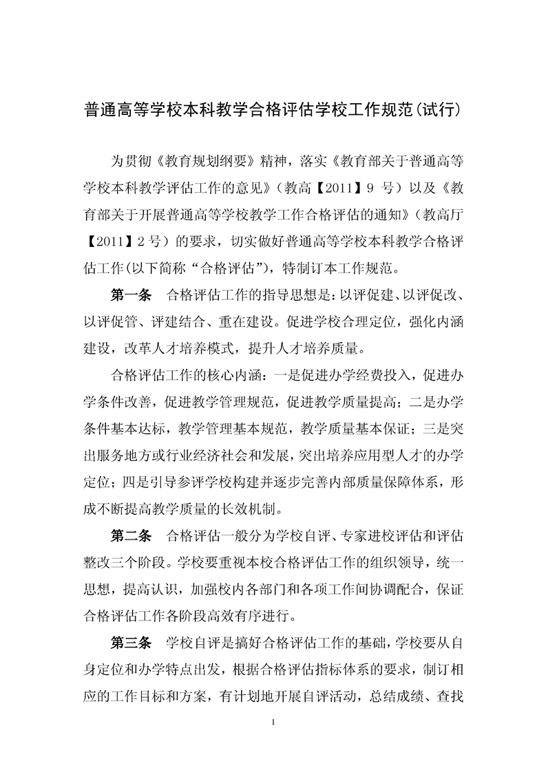 普通高等学校本科教学合格评估学校工作规范(试行)