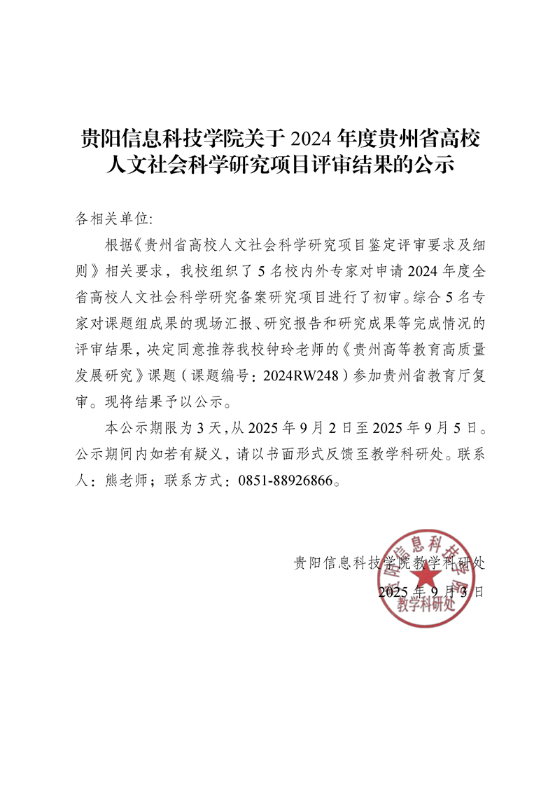 BV伟德中国官方网站关于2024年度贵州省高校人文社会科学研究项目评审结果的公示