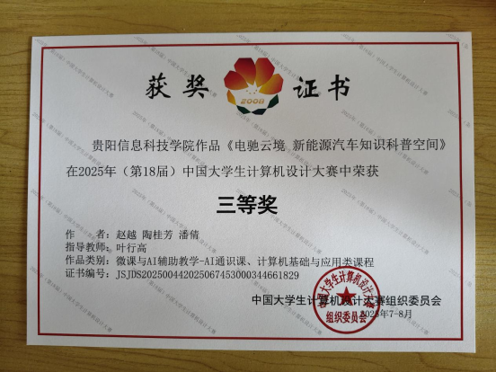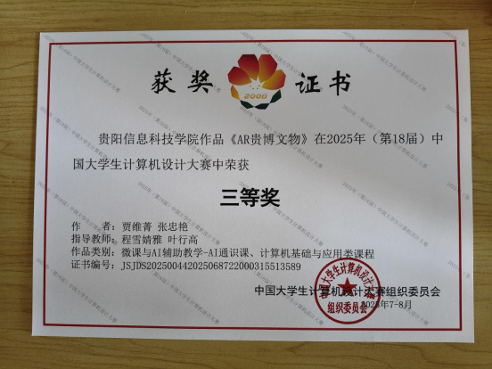 本次优异成绩的取得,离不开学校教务处和数字传媒学院的大力支持。这不仅是对参赛师生辛勤付出的肯定,也充分彰显了伟德官网在计算机基础、信息技术与教育数字化等领域的教学与科研实力,展现了贵科学子扎实的专业基础与出色的创新能力。