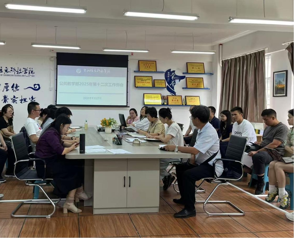 2025年9月17日中午12时40分,BV伟德中国官方网站公共教学部在A211会议室召开第十二次工作例会。会议由唐丽华部长主持,公共教学部全体教师参会。