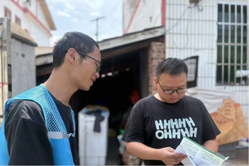 在发放宣传单过程中,一位农户对宣传内容高度赞同,他接过宣传单仔细看完,连连点头:“你们说的我都懂了!这垃圾乱扔确实不行,堆着臭得很,流到湖里更糟。我这就把这单子贴到村口电线杆上,让过路的都瞧瞧,大家一起别再乱甩了!”朴实的话语里,藏着对家乡环境最真切的爱护,也让队员们深切感受到,当宣传真正触达人心,便能唤醒更多人主动参与的热情。