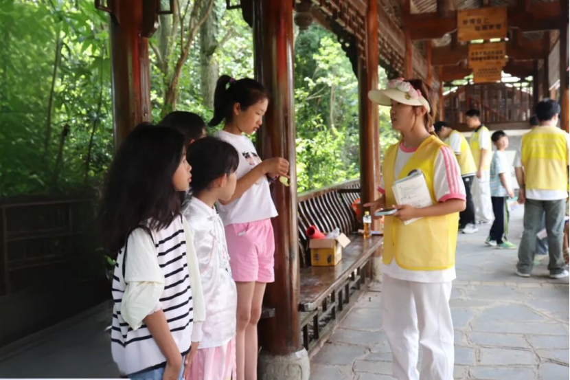 活动于下午14时开始,巧妙融合理论宣讲与趣味互动。实践队成员王烨帆通过主题分享,生动展示了各民族绚丽的服饰、独特的节日习俗与丰富的文化符号。从蒙古族的那达慕到傣族的泼水节,从藏族的雪顿节到布依族的三月三,精美的图片与视频带领孩子们畅游民族文化长河,现场惊叹连连。互动环节,“民族萝卜蹲”游戏将气氛推向高潮。孩子们化身苗族、布依族、彝族、傣族代表,在指令声中敏捷反应,欢声笑语洋溢广场,阳光下的跃动身影充满童真活力。随后的趣味问答环节,孩子们更是热情高涨,踊跃抢答,求知的目光与收获礼物的喜悦交织。