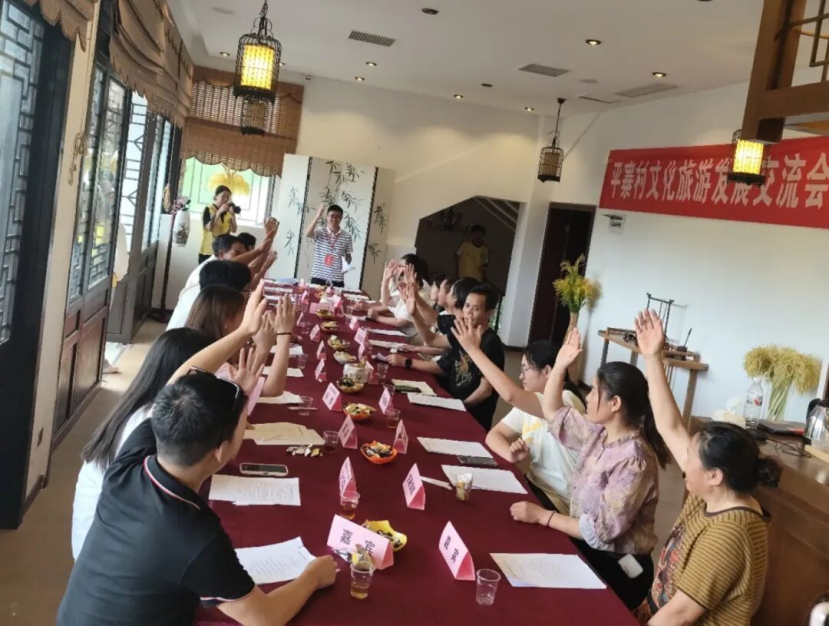 7月10日,在村古老民族文化艺术馆由实践队发起的《平寨村文化旅游发展交流会》邀请了村主任王河、布依族文化专家陈锡林、六月六风情街企业家、民宿业主、村大学生代表及旅游管理专业教师蔡朝笛等近30人齐聚一堂。经过两个多小时热烈讨论,碰撞出丰硕成果:《平寨村文化旅游发展合作倡议书》现场签署;“北斗七寨文化旅游发展协会”(筹委会)宣告成立并选举筹备委员会成员;四大创新计划启动:“文旅代言人计划”“全民自媒体计划”“校企合作计划”“周末常态化赶集计划”,全方位激活文旅生态。