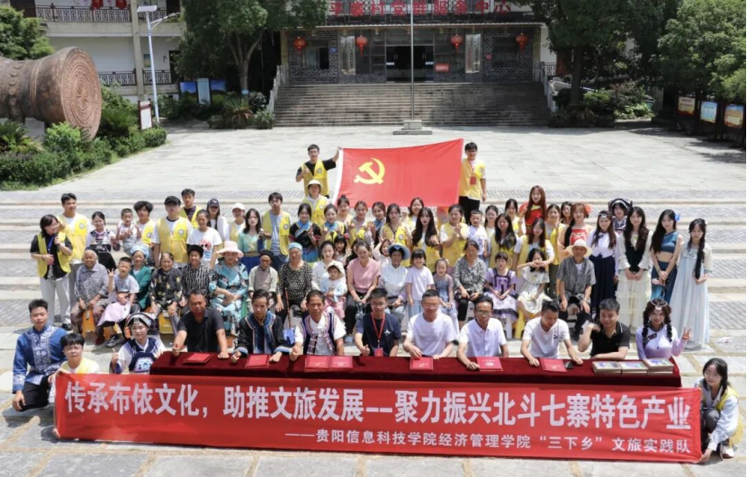 7月12日,平寨村委会广场“北斗七寨文化旅游发展协会”揭牌暨“文旅代言人”聘书颁发仪式在此举行。村民、企业家、游客热情高涨。BV伟德中国官方网站学子与村民联袂献上布依歌舞,欢庆协会诞生。仪式高潮,全场齐声高唱《我在贵州等你》,以真挚歌声向四海宾朋发出避暑之约。