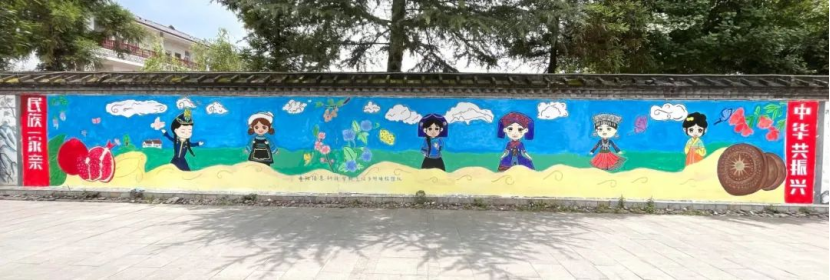 “艺绘乡村”实践队的队员们以画笔为媒,将独属于平寨村的民族元素与乡情、风貌相结合,在墙体上勾勒出一幅幅生动鲜活的画面。这些手绘画作品不仅美化了村容村貌,更以直接的艺术形式展现了“民族团结一家亲”的精神,成为传递民族同心理念、激发乡村文化活力的特殊载体。贵科院的青年学子以实际行动践行中国式现代化建设要求,为乡村振兴注入青春力量,让民族团结之花在乡村的沃土上持续绽放。