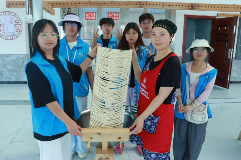 活动开篇,队伍走进遵义市绥阳县空心面非遗传承基地。在传承人的细致讲解与带领下,队员们深入了解空心面悠久历史、独特工艺和文化价值。大家还在师傅指导下,亲手体验制作关键环节。沉浸式参与中,队员们真切体会到传统手工技艺的精湛,懂得匠心坚守的不易,对非遗保护与传承有了更直观认知,让古老技艺在青春触摸中,延续传承温度。