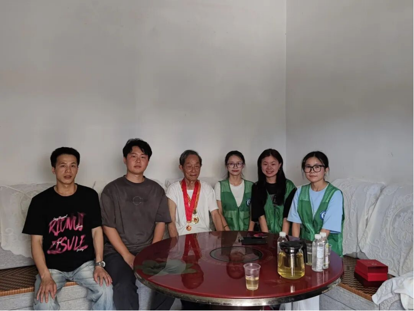 红色基因是乡村振兴的精神动力。实践期间,队员们在临江村第一驻村书记丁超、驻村干部穆寰宇的陪同下,专程拜访了91岁的老党员钟永友。7月16日下午,鲐背之年的钟永友精神矍铄,深情回溯了自己从递交入党申请书时的郑重承诺,到宣誓时的热血沸腾,再到数十年扎根乡村、为民服务的坚守历程。老人朴实无华的话语如春风化雨,让队员们深受触动,进一步坚定了传承红色基因、服务乡村振兴的信念。