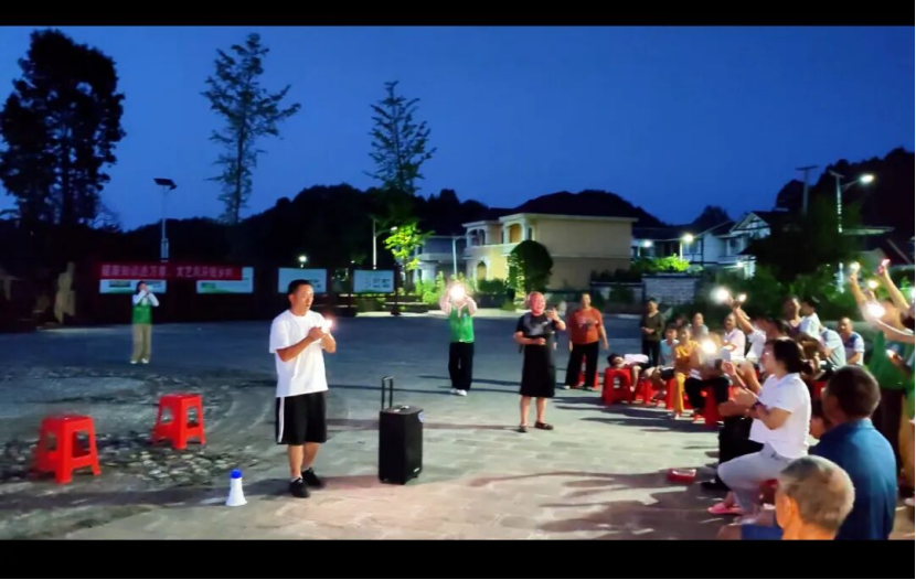 文化是乡村的灵魂,实践团以文化为纽带,搭建起校地交流的桥梁。7月13日晚,临江村晒秋广场灯火通明,一场由实践团与临江完小师生联袂打造的文艺汇演在此上演。舞蹈、歌唱、朗诵等节目轮番登场,队员们带来的健康主题小品寓教于乐,孩子们的纯真歌声打动人心,最终在进化镇人民政府产业发展中心龚德平同志带领的全场大合唱《歌唱祖国》中,将气氛推向高潮,嘹亮的歌声里饱含着对祖国的祝福,也传递出青年与乡村同心奋进的力量。