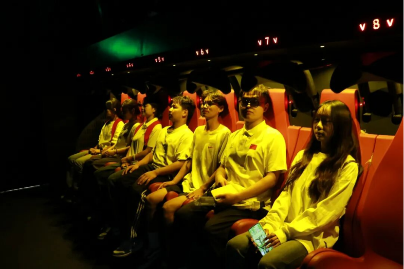 随后,学生们前往《红飘带・多彩飞越》球幕影院体验区,大家乘坐悬挂式座椅,“飞越”黔贵大地——黄果树瀑布奔涌向前、梵净山云雾缭绕山间、万桥飞架连通城乡,新时代贵州的绿水青山、民族共融与蓬勃发展景象尽收眼底。