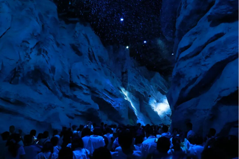 活动现场,青年学生们在工作人员的带领下有序进入场馆,首先聚焦《红飘带・伟大征程》展区。该展区通过全息影像、机械传动、AI交互等前沿技术,将“无名英雄”“血火洗礼”“伟大转折”等六大篇章生动呈现,真实还原了抗日战争时期与长征路上的峥嵘岁月。
