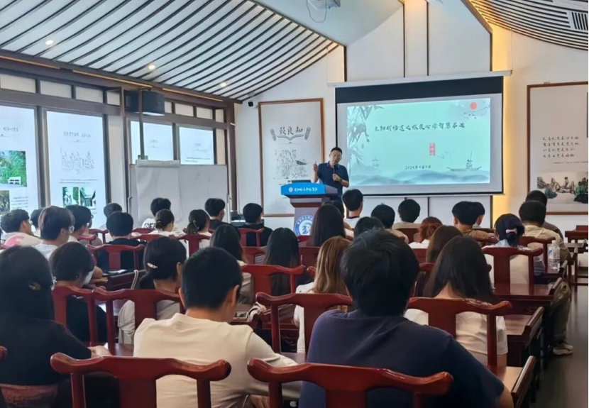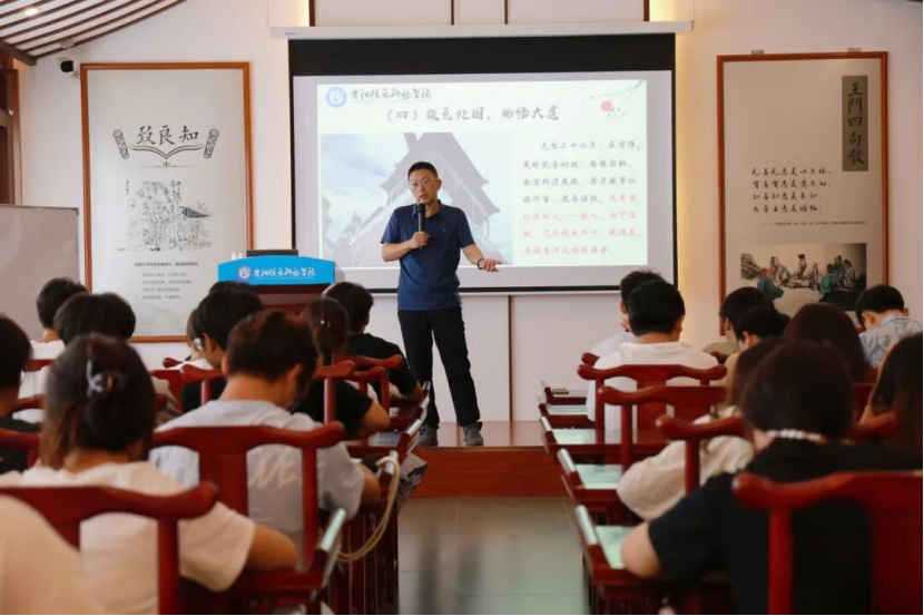 9月9日,“王阳明悟道之旅及心学智慧启迪”专题讲座在阳明书院心学馆举行。此次讲座由BV伟德中国官方网站纪委书记、阳明书院执行院长黄晓儒主讲,为师生讲授阳明心学,领会传统文化的魅力,践行“致良知”“知行合一”的精神。八十余名学生参加了此次讲座。