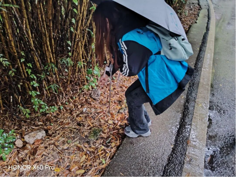 这次巡河护河,志愿者们分成了两支“行动小队”。第一支小队沿着河道向中间进发,开启“垃圾拾取大作战”。队员们手持长柄夹子,就像拿着“宝物搜寻器”,弯腰把地上的果皮、塑料袋等湿垃圾一一夹起,再小心翼翼放进随身带的垃圾桶。每一次弯腰、每一次夹取,都满是对河道环境的疼爱。