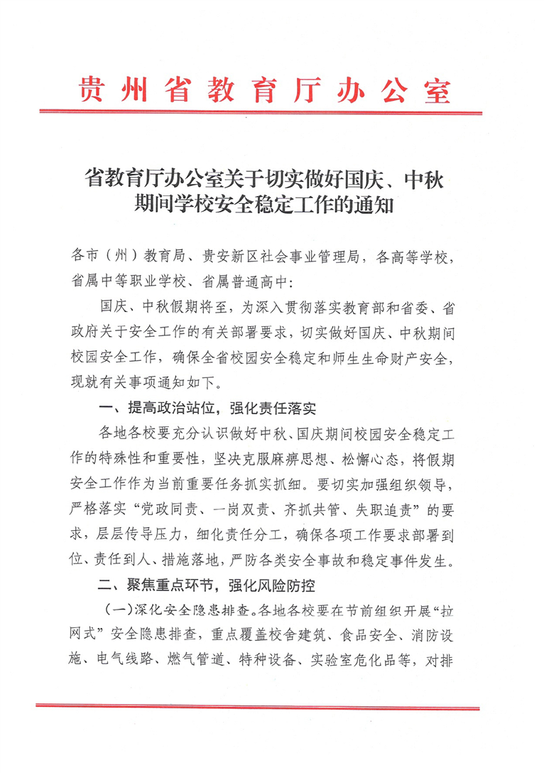 实践实训中心转发省教育厅办公室关于切实做好国庆、中秋期间学校安全稳定工作的通知