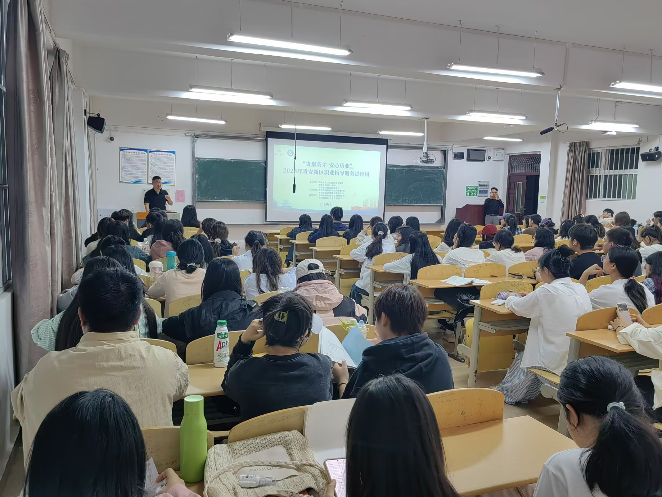 新闻网讯(供稿/供图 赵政)为助力2026届毕业生深入了解银行及央国企求职流程,全面提升应聘竞争力,9月24日晚,经济管理学院于E206教室成功开展“银行与央国企备考面试专题指导”讲座。活动特邀资深职业规划导师程向军担任主讲,吸引财务、会计、管理等专业百余名毕业生踊跃参与。