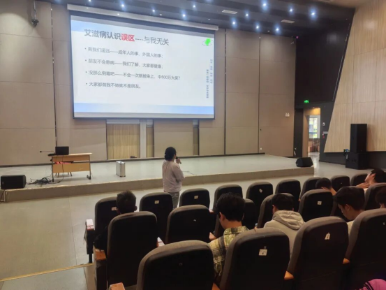 随后,贵阳市疾病预防控制中心佘敏老师围绕艾滋病防治展开讲解,从传播途径、社会危害到检测干预政策,系统梳理了艾滋病防治的专业知识,引导同学们树立“知艾防艾、科学防护”的健康观念,现场互动环节中,同学们踊跃提问,对艾滋病的认知误区得到逐一解答。