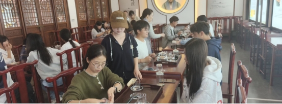 演示中,屠老师同步讲解水温、投茶量、冲泡时间对茶汤口感的影响,学员们皆专注观摩,定格下这堂生动的实操课。