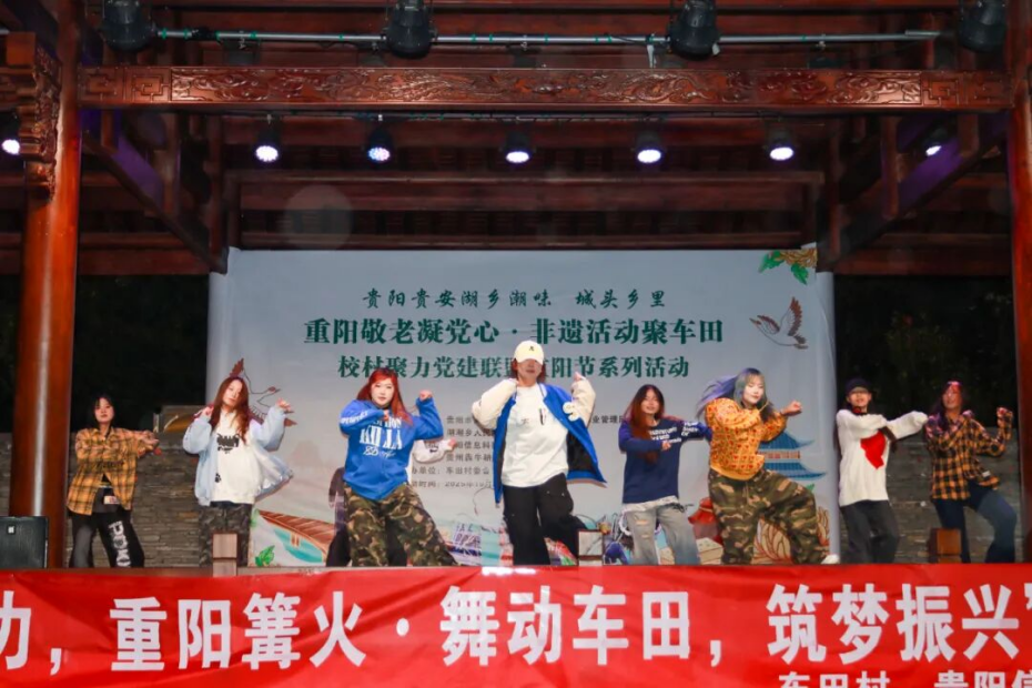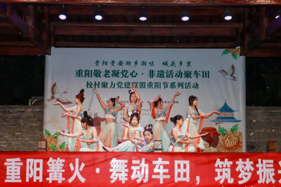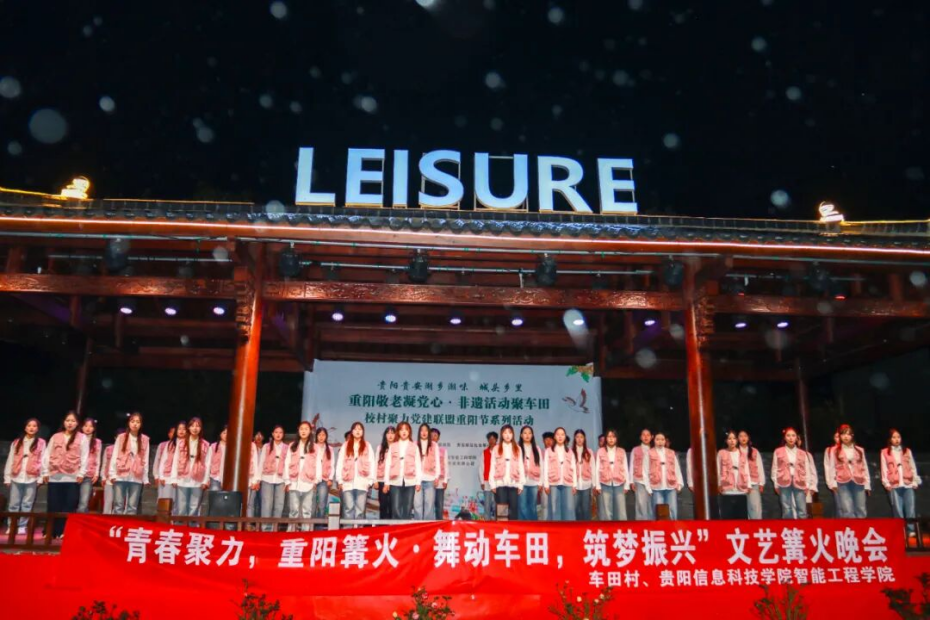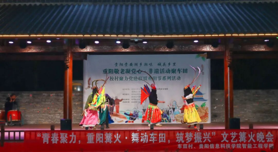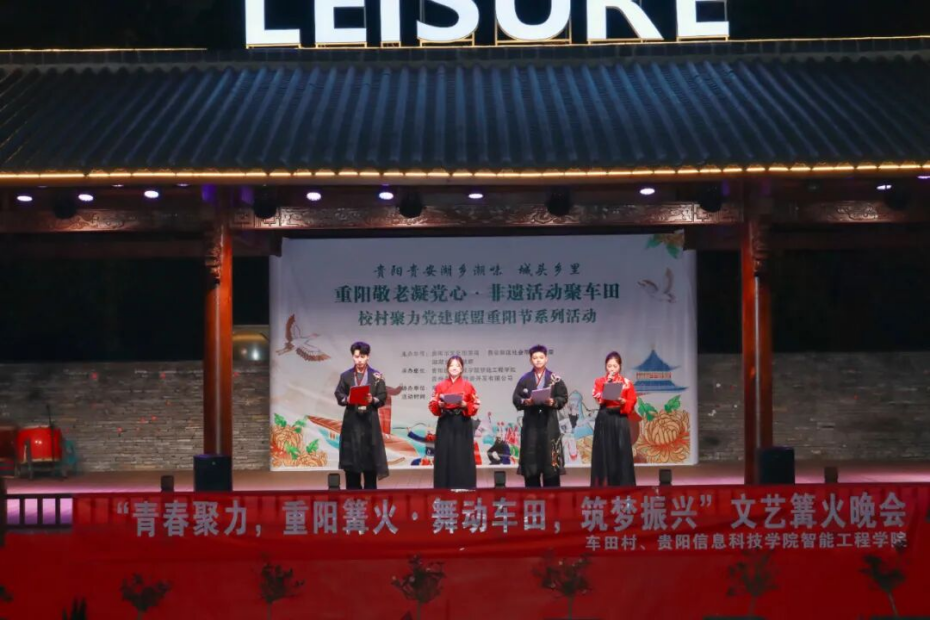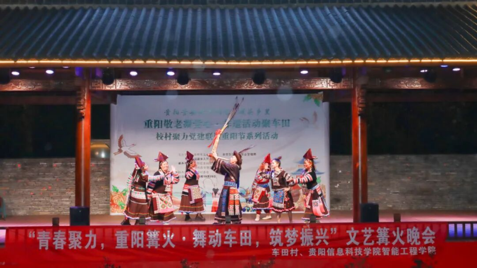 为传承中华民族尊老、敬老、爱老、助老的传统美德,10月29日,在重阳节来临之际,伟德官网智能工程学院联合贵安新区湖潮乡车田村举办“重阳敬老凝党心・非遗活动聚车田”校村聚力党建联盟重阳节系列活动暨篝火晚会。校团委副书记(主持工作)罗一檾带领团委学生会代表、国旗护卫队、街舞社、民舞社等社团代表到场参加活动,共同点燃篝火,学子们献上民族国风与现代舞融合的精彩表演,在传承尊老爱老美德的同时,让村寨老人感受节日温暖与文化魅力,深化校村共建情谊。