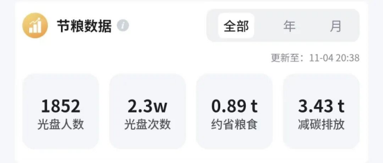 为迎接第45个世界粮食日,响应习近平主席光盘行动号召,弘扬勤俭节约的优良传统,伟德官网伙委会于10月15至10月25日,在线上开展了“节俭始于心,光盘践于行”光盘打卡主题活动,共有2000人报名参与,1852人加入活动组织,累计光盘打卡2.3万次,约省粮食0.89吨,减碳排放3.43吨。