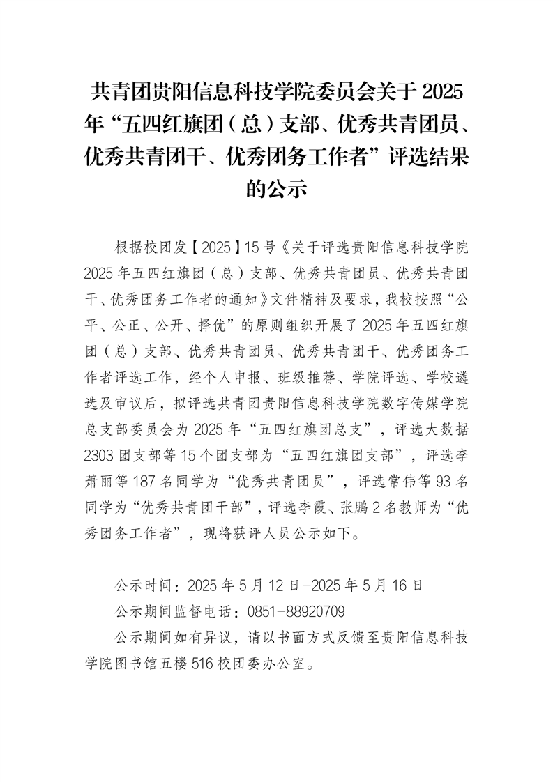 共青团BV伟德中国官方网站委员会关于2025 年“五四红旗团(总)支部、优秀共青团员、 优秀共青团干、优秀团务工作者”评选结果的公示