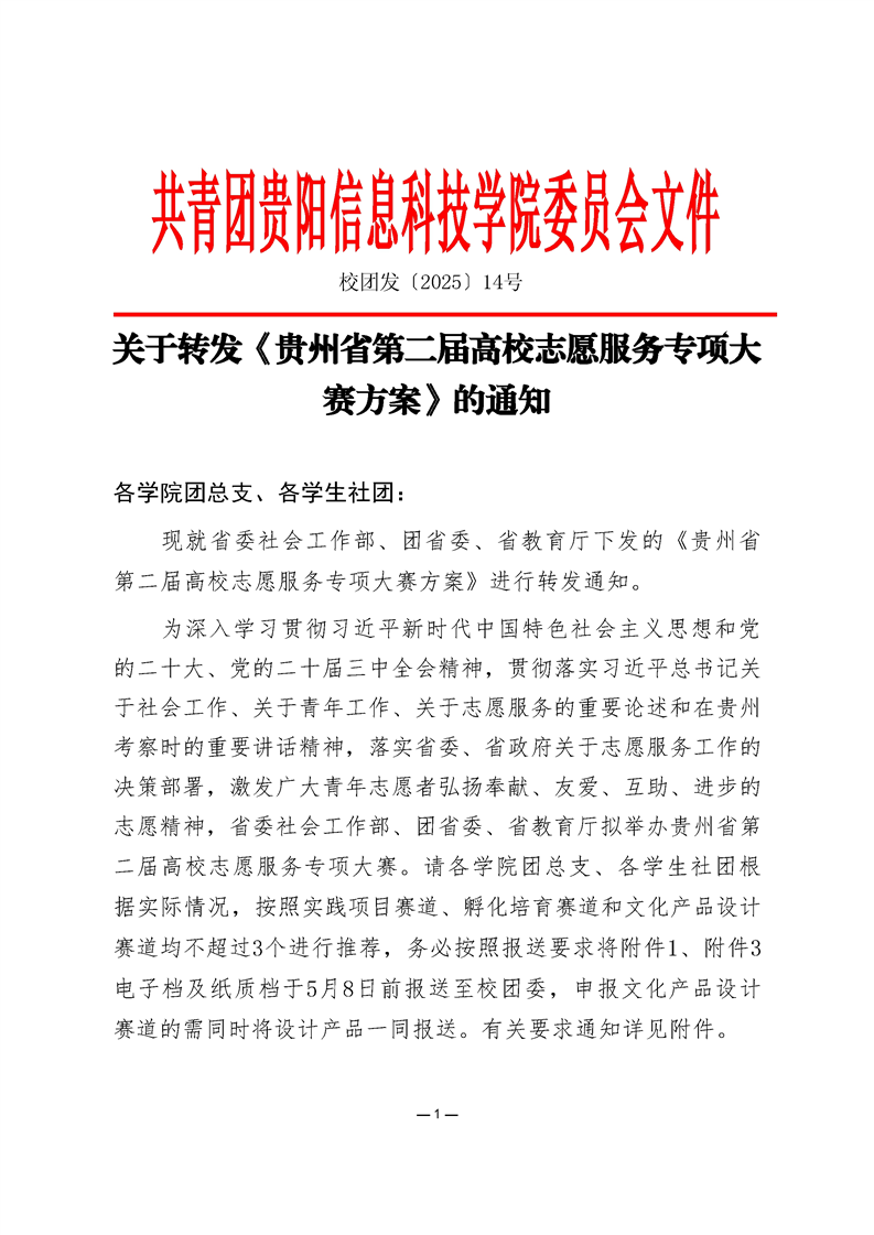 关于转发《贵州省第二届高校志愿服务专项大赛方案》的通知
