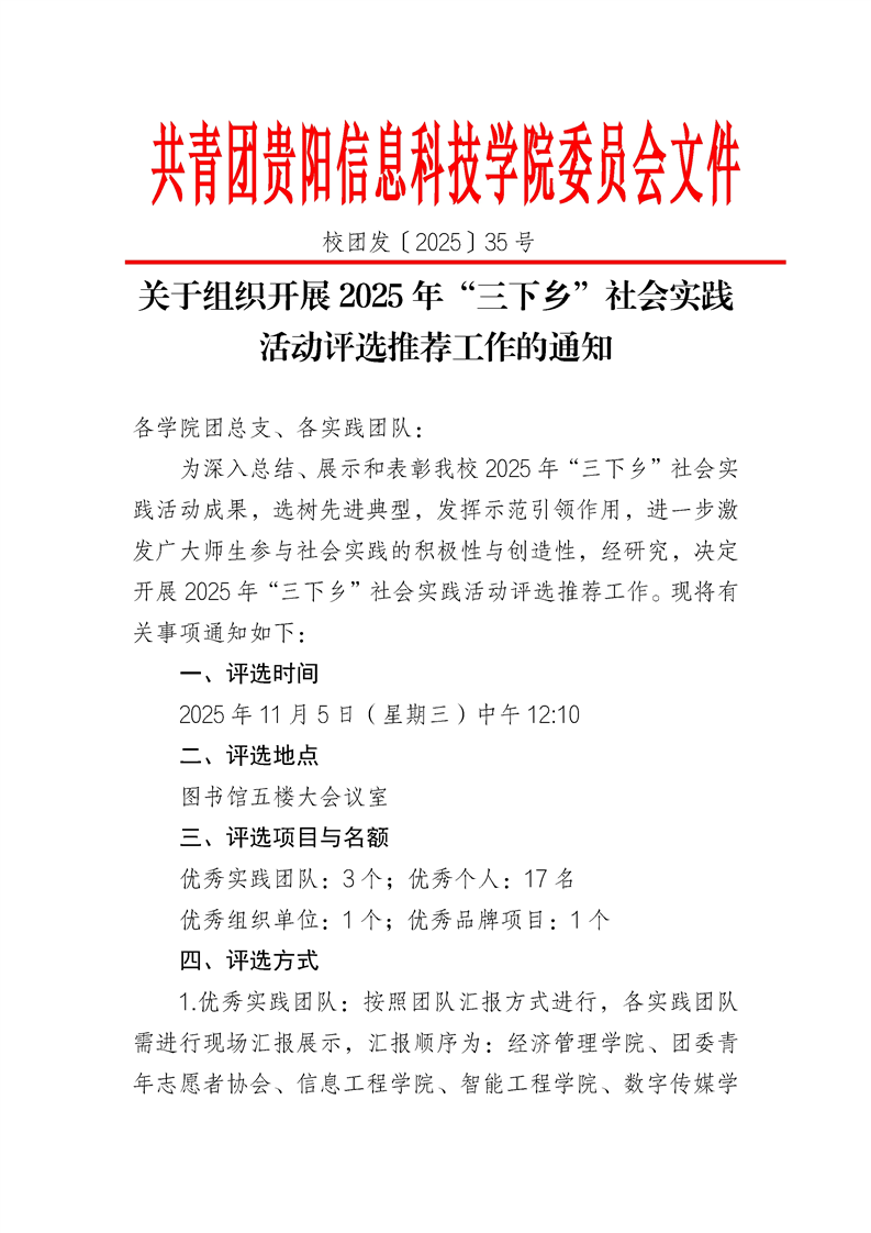 关于组织开展2025年“三下乡”社会实践 活动评选推荐工作的通知