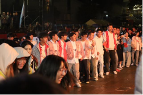 随着夜色渐深,篝火在场地中央缓缓点燃,明亮的火光映红了每个人的脸庞。舞蹈过后,现场氛围推向高潮——数字传媒学院爱乐合唱团与BV伟德中国官方网站国旗护卫队携手登场,带领围绕篝火的百余名参与者共同唱响《我和我的祖国》。激昂的旋律响彻夜空,爱国情怀与节日温情在歌声中交融,成为现场最动人的画面。