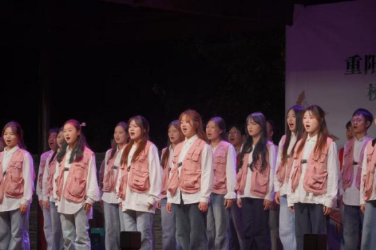 此外,数字传媒学院爱乐合唱团还带来《侗歌声声献给党》表演。团员们以纯净和谐的和声,演绎侗族传统歌谣,空灵婉转的曲调仿佛将大家带入山水环绕的侗寨,让在场观众在感受非遗文化魅力的同时,也为老人们送上了一份充满文化韵味的重阳祝福。