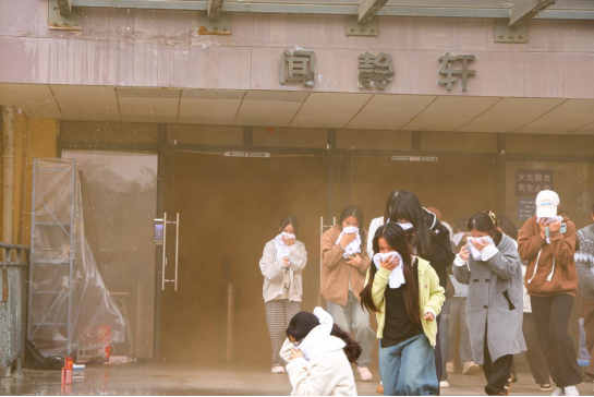 培训伊始,学生公寓区响起模拟火警警报,应急疏散预案即刻启动。在消防救援人员与学校老师的联合引导下,学生们规范采取低姿弯腰、捂鼻防护姿势,沿指定疏散路线迅速有序撤离至安全区域,全程组织严密、响应高效。