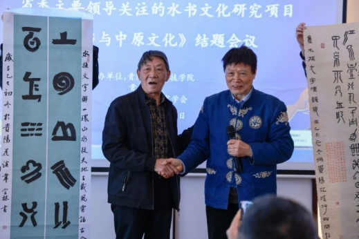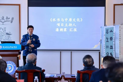 贵州文史馆馆员、《水书与中原文化》项目主持人潘朝霖研究员汇报了项目的结题情况。他围绕水文创制、水文造字、水书历法与华夏古代历法的关联等,详细阐述了水书与中原文化的渊源与联系。《水书与中原文化》项目成果为学术专著,拟分为十二章、五十余万字,该书图文并茂。结题后的出版将出专著的角度弥补水书与中原文化领域的专著研究的学术空白,具有重要的学术意义。