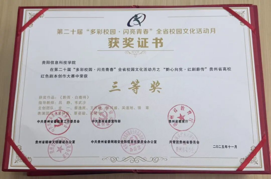 近日,由中共贵州省委教育工委、贵州省教育厅主办的第二十届“多彩校园·闪亮青春”全省校园文化活动月成果展示暨颁奖仪式在遵义师范学院举行。