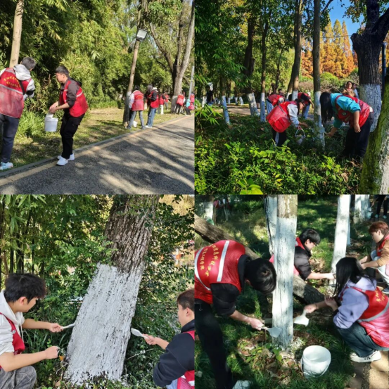 此次活动圆满结束,近百棵树木均完成刷白养护,既为树木筑起防虫防冻的 “安全屏障”,也为公园步道增添了整洁美感。花溪公园管理处高度认可志愿者表现,他们表示:“同学们工作高效、细节细致,切实解决了树木养护难题,青春活力让园区更有温度!”