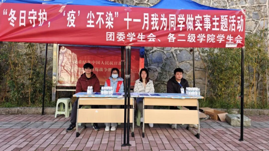 凛冬已至,暖意先行。11月27日,伟德官网团委学生会联合各二级学院学生会,在学校一、二食堂门口同步启动“冬日守护,‘疫’尘不染”主题服务活动,面向全校师生免费发放便携消毒喷雾,以精准化服务筑牢冬季校园健康防线,让寒意渐浓的校园涌动暖心关怀,切实将“我为同学做实事”的工作要求落到实处。