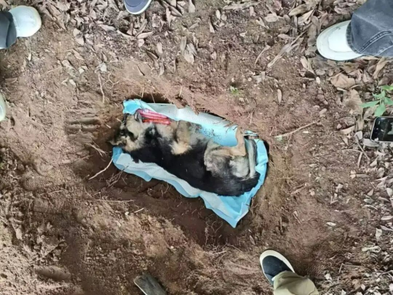 活动期间,基地里名叫“小帅”的狗狗离世。基地负责人小心翼翼地用干净布单裹住它,带着志愿者们走向一片绿植掩映的山坡:认真挖坑、铺好落叶,为“小帅”完成了安葬,基地负责人轻声安抚着:“小帅以后有安稳的家啦”。这份对生命的郑重与温柔,让志愿者们懂了:对毛孩子的爱,不止是日常照料,也藏着一场体面的告别。