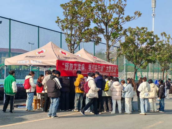 12月2日,“预防艾滋病,我们在行动”主题摆点活动在校园有序开展:工作人员向参与学生发放防艾宣传手册并同步科普传播途径、防护要点,随后通过一对一知识问答巩固认知、厘清“日常接触不感染”等误区,现场学生还亲手制作红丝带并写下“拒绝歧视,用爱包容”“我们在一起”等暖心寄语,最后在签名墙留下笔迹,以实际行动许下“科学防艾、零歧视”的承诺。